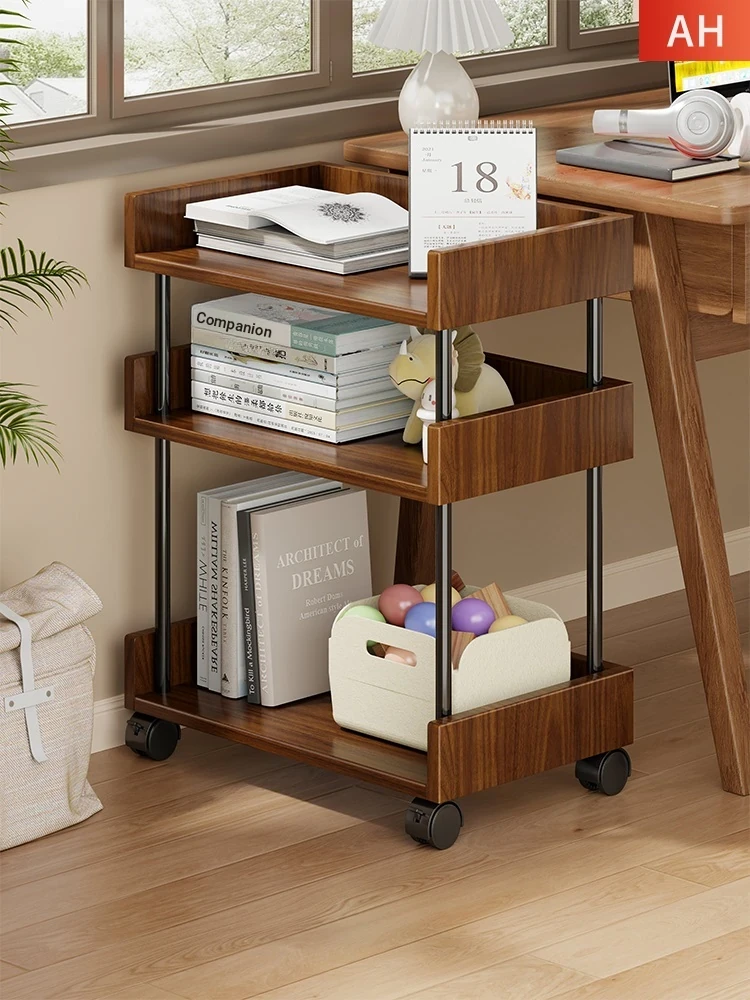 Versatile Wooden Bookshelf with Wheels - Convenient Multi-Tier Storage Rack for Office and Home, Easy to Move, Perfect for Book Display Under Desk