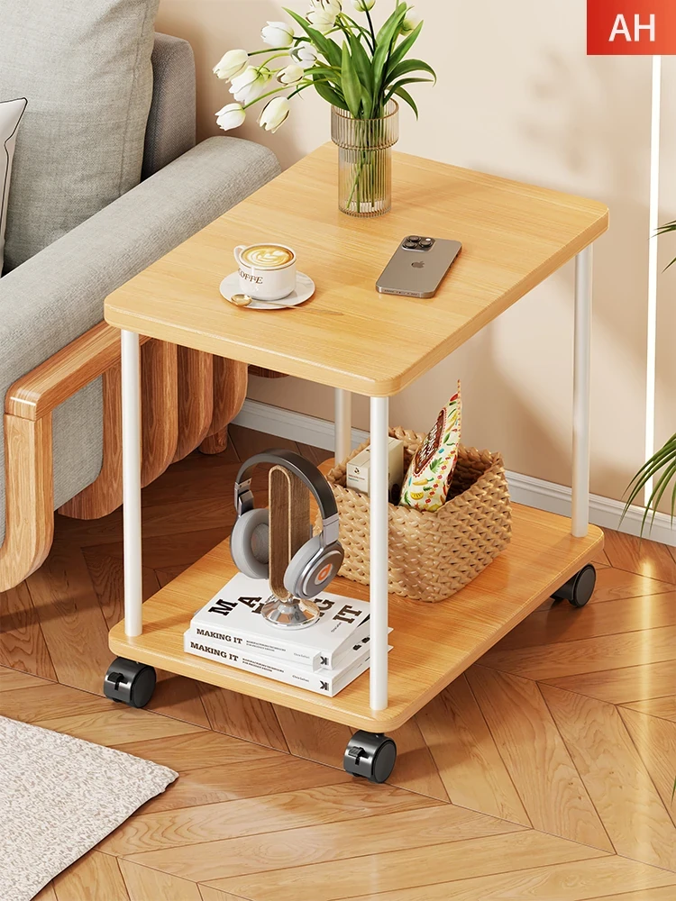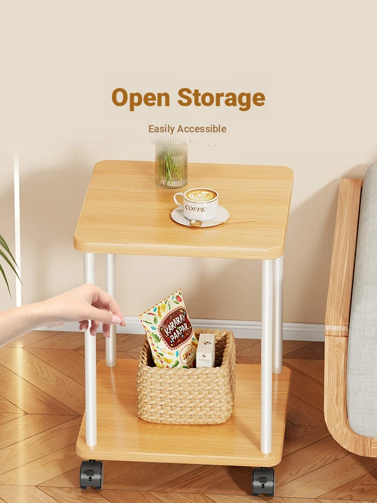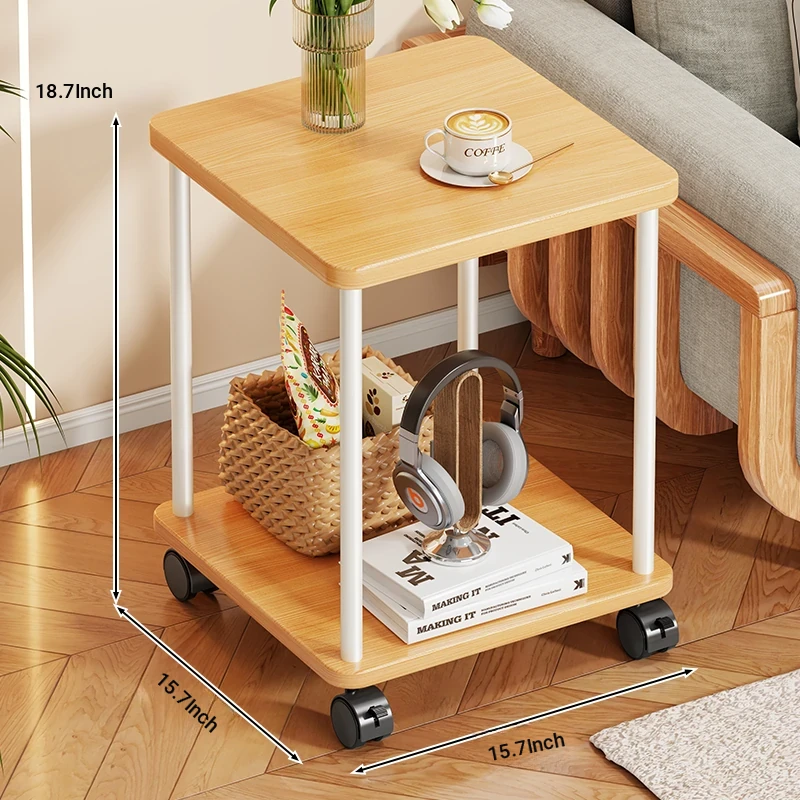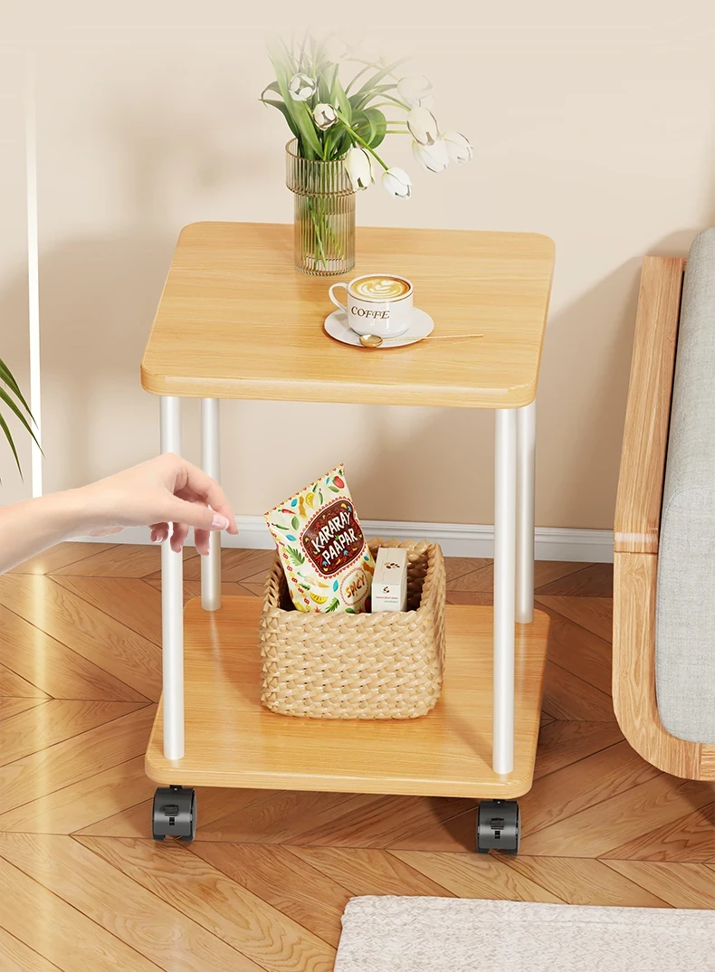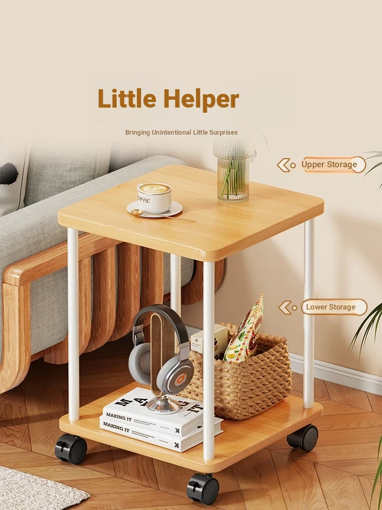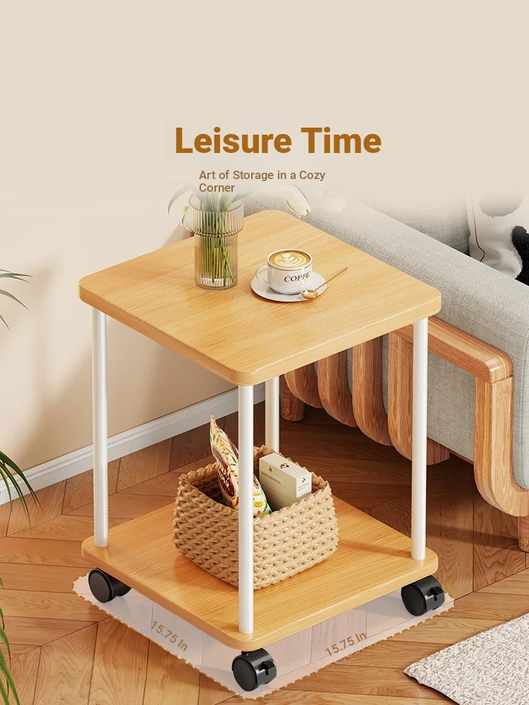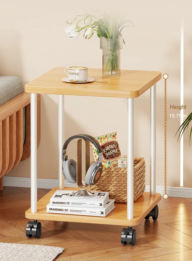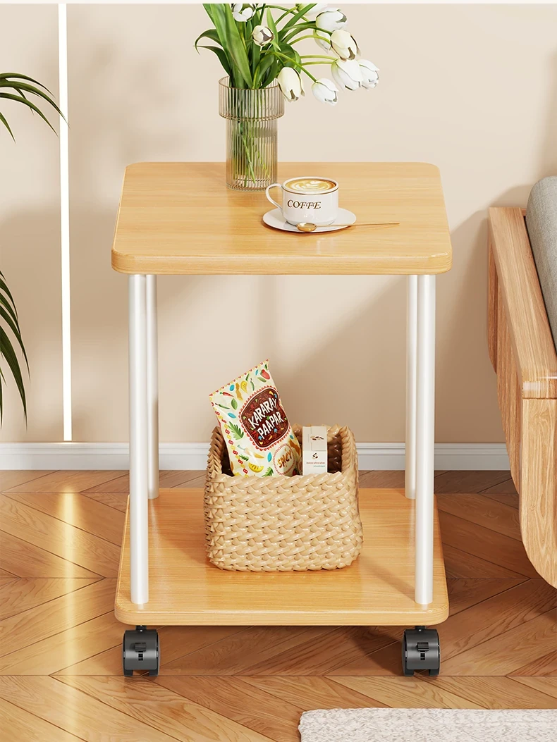Stylish Solid Wood Movable Snack Cart - Creamy Chic Mini Side Table for Living Room, Sofa, or Bedside Storage Solution